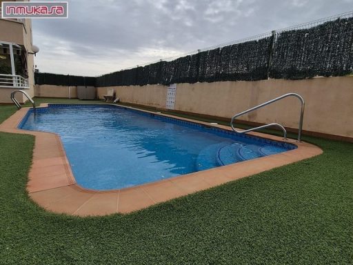 Chalet independiente 100 m2. Tiene 3 habitaciones, 2 baños, salón - comedor, cocina independiente, solárium, trastero, porche, parking, terraza y piscina cubierta. Amueblado, electrodomésticos. Parcela de 300 m2.